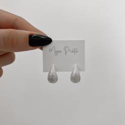 Brinco gota pesada cravejada 18mm | Mya Prata