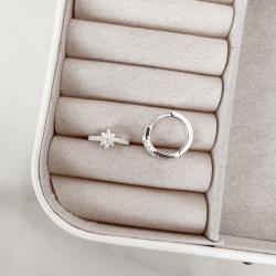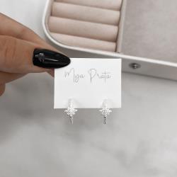 Argola click estrela 8 pontas cravejada 15mm | Mya Prata