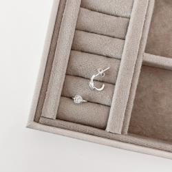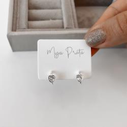 Brinco meia argola com zircônia coração 11mm tarraxa | Mya Prata