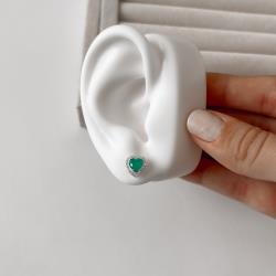 Brinco zircônia coração verde fusion com cravejado 9mm