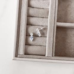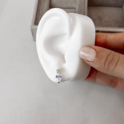 Brinco zircônias redonda cristal e gota cinza 13mm