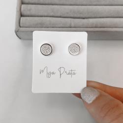 Brinco circulo com meio cravejado 10mm | Mya Prata