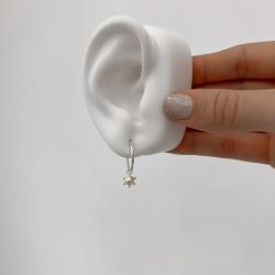 Argola redonda rebitada 16mm pingente pérola | Mya Prata