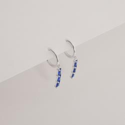 Argola click 12mm pingente zircônias retangulares azul bic | Mya Prata