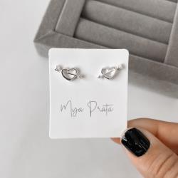 Brinco coração vazado com flecha detalhe zircônia 14mm | Mya Prata