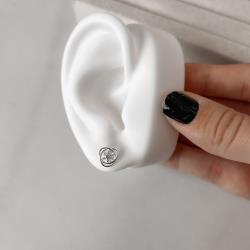 Brinco 3 elos trançados com flor cravejada 9mm | Mya Prata