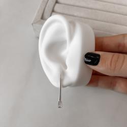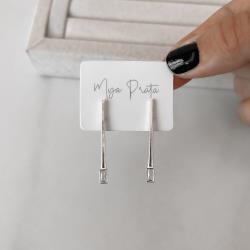 Brinco bastão com zircônia retangular 35mm | Mya Prata