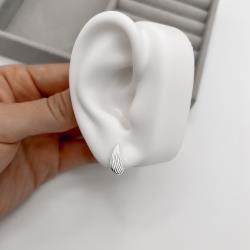 Brinco gota curvada riscada 14mm | Mya Prata