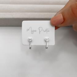 Brinco meia argola coração cravejado 15mm | Mya Prata