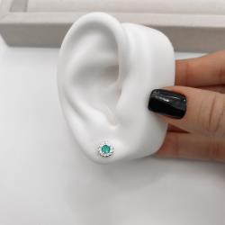 Descrição: Brinco zircônia redonda acqua detalhe torcido 7mm fabricado(a) em prata