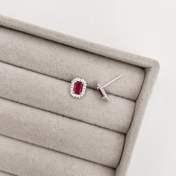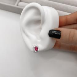 Brinco zircônia retangular cereja detalhe torcido 10mm