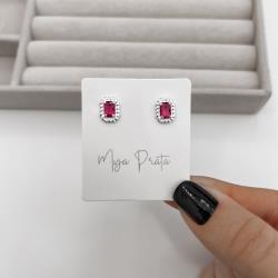 Brinco zircônia retangular cereja detalhe torcido 10mm | Mya Prata