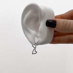 Descrição: Brinco corações alongados liso e cravejado 19mm pingente coração vazado fabricado(a) em prata