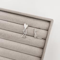 Brinco corações alongados liso e cravejado 19mm pingente coração vazado