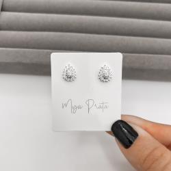 Descrição: Brinco gota toda cravejada 10mm fabricado(a) em prata