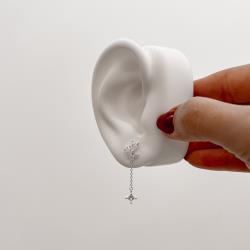 Descrição: Brinco zircônias 8mm pingente corrente cadeado fabricado(a) em prata