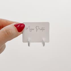 Argola click 11mm frente e interior cravejado duplo | Mya Prata