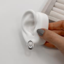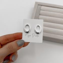 Descrição: Brinco oval vazado 18mm fabricado(a) em prata