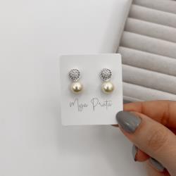 Brinco meia bola cravejada e pérola 17mm