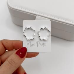Descrição: Brinco assimétrico ondulado vazado 20mm fabricado(a) em prata