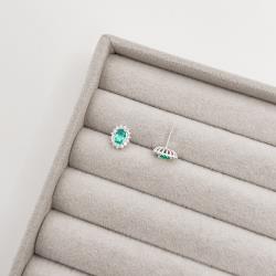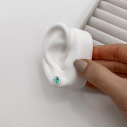Brinco zircônia oval acqua com cravejado 10mm