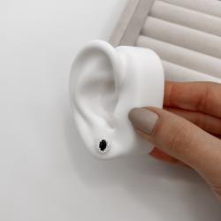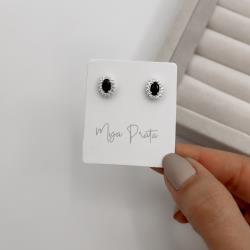 Brinco zircônia oval ônix com cravejado 10mm | Mya Prata