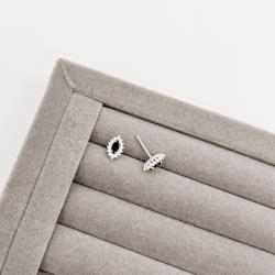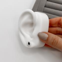 Brinco zircônia navete ônix com cravejado 10mm | Mya Prata