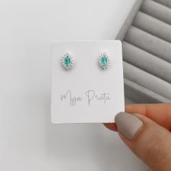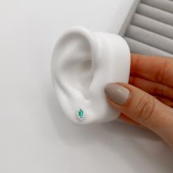 Brinco zircônia navete turmalina com cravejado 10mm | Mya Prata