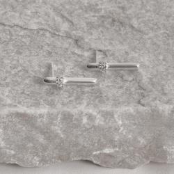 Brinco bastão detalhe cravejado 18mm | Mya Prata