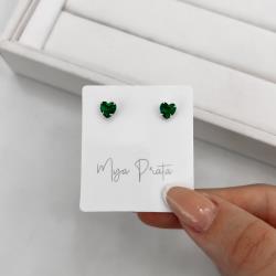 Brinco zircônia coração esmeralda 6mm | Mya Prata