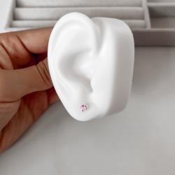 Brinco zircônia redonda rosa 4mm