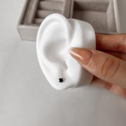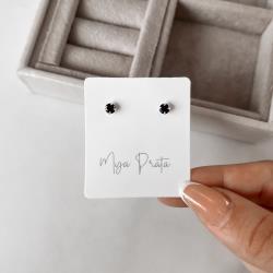 Brinco zircônia redonda ônix 4mm | Mya Prata