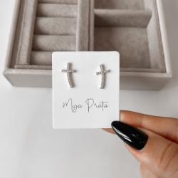 Descrição: Brinco cruz curva cravejada 15mm fabricado(a) em prata