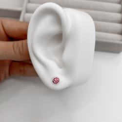 Brinco zircônia redonda embutida rosa 6mm