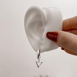 Argola 18mm tarraxa pingente triângulo | Mya Prata