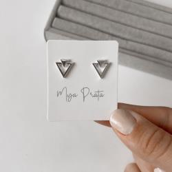 Brinco triângulo com triângulo vazado 11mm | Mya Prata