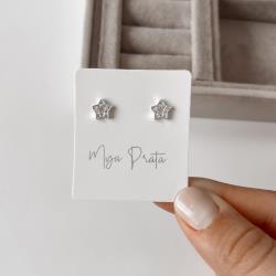 Brinco estrela vazada cravejada 7mm | Mya Prata