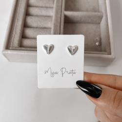 Descrição: Brinco coração 8mm risco cravejado fabricado(a) em prata