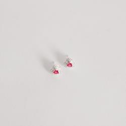 Conjunto brinco e colar zircônia coração cereja com duplo cravejado 10mm 45cm | Mya Prata