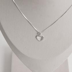 Descrição: Conjunto brinco e colar coração vazado metade cravejado 12mm 45cm fabricado(a) em prata