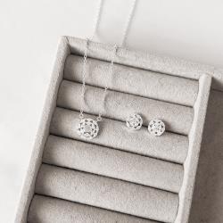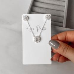 Conjunto brinco e colar flor cravejada 11mm corrente cadeado 40+5cm | Mya Prata