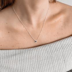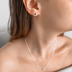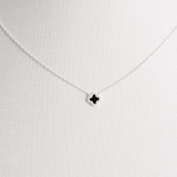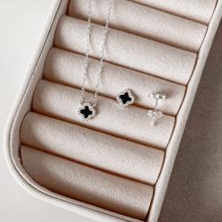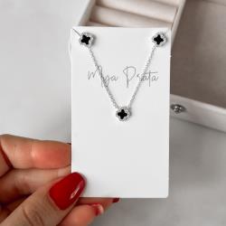 Conjunto brinco e colar trevo ônix com cravejado 7mm 40cm com extensor | Mya Prata