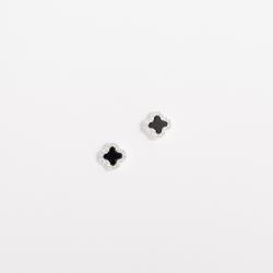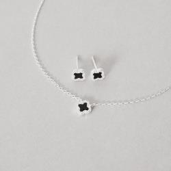 Descrição: Conjunto brinco e colar trevo ônix com cravejado 7mm 40cm com extensor fabricado(a) em prata