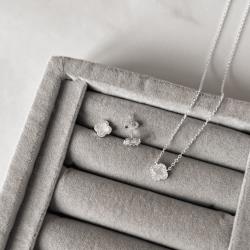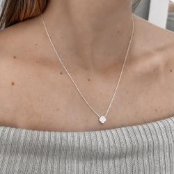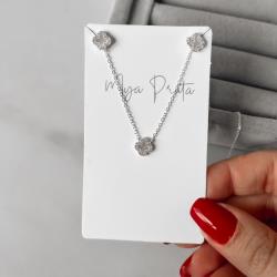 Conjunto brinco e colar trevo madrepérola com cravejado 7mm 40cm com extensor | Mya Prata