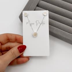 Conjunto brinco e colar círculo perolado resina 10mm 45cm | Mya Prata
