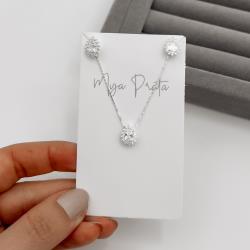 Conjunto brinco e colar zircônia gota com cravejado 10mm 45cm | Mya Prata