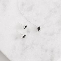 Conjunto brinco e colar zircônia oval ônix com cravejado 10mm 45cm | Mya Prata