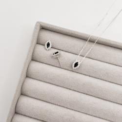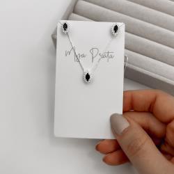 Conjunto brinco e colar zircônia navete ônix com cravejado 10mm 45cm | Mya Prata