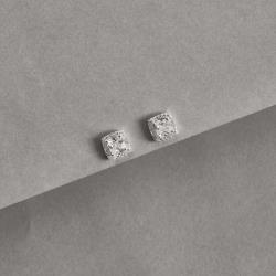 Conjunto brinco e colar pingente zircônia quadrada com cravejado 8mm 45cm | Mya Prata