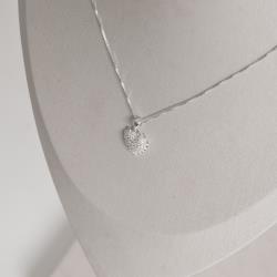 Descrição: Conjunto brinco e colar coração cravejado com borda 12mm 45cm fabricado(a) em prata